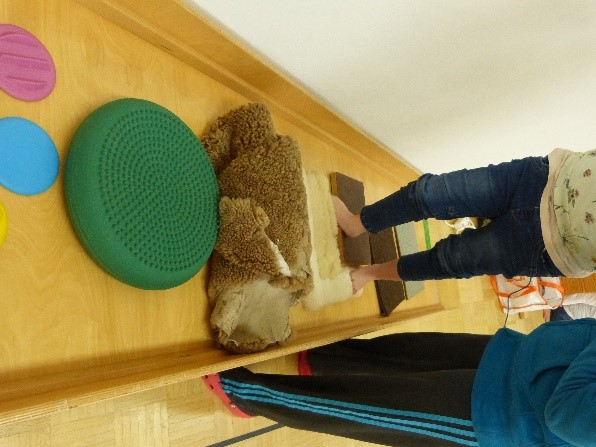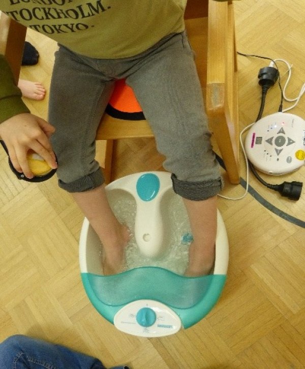 Im Blindeninstitut München - am Standort in Solln - hieß es raus aus den Orthesen und rein ins taktile, thermische und vibratorische Stimulationsangebot der Füße. Es fand unser erster Barfußtag statt. Der Barfußtag stieß bei allen Beteiligten auf großes Interesse und bereitete viel Spaß.