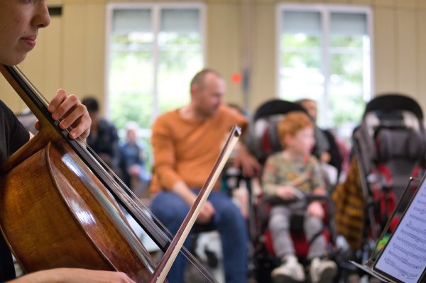 Und so kamen ein Streichquartett des BRSO ehrenamtlich ans Blindeninstitut, um für diejenigen zu spielen, die es sonst aufgrund mangelnder Barrierefreiheit nur schwer in ein Konzerthaus schaffen. Mit ihrer Musik bewegten sie die jungen Zuschauer*innen sichtlich - an manchen Stellen zum gebannt Zuhören, an anderen Stellen zum Tanzen, Klatschen, Mitsingen und Mitfreuen.