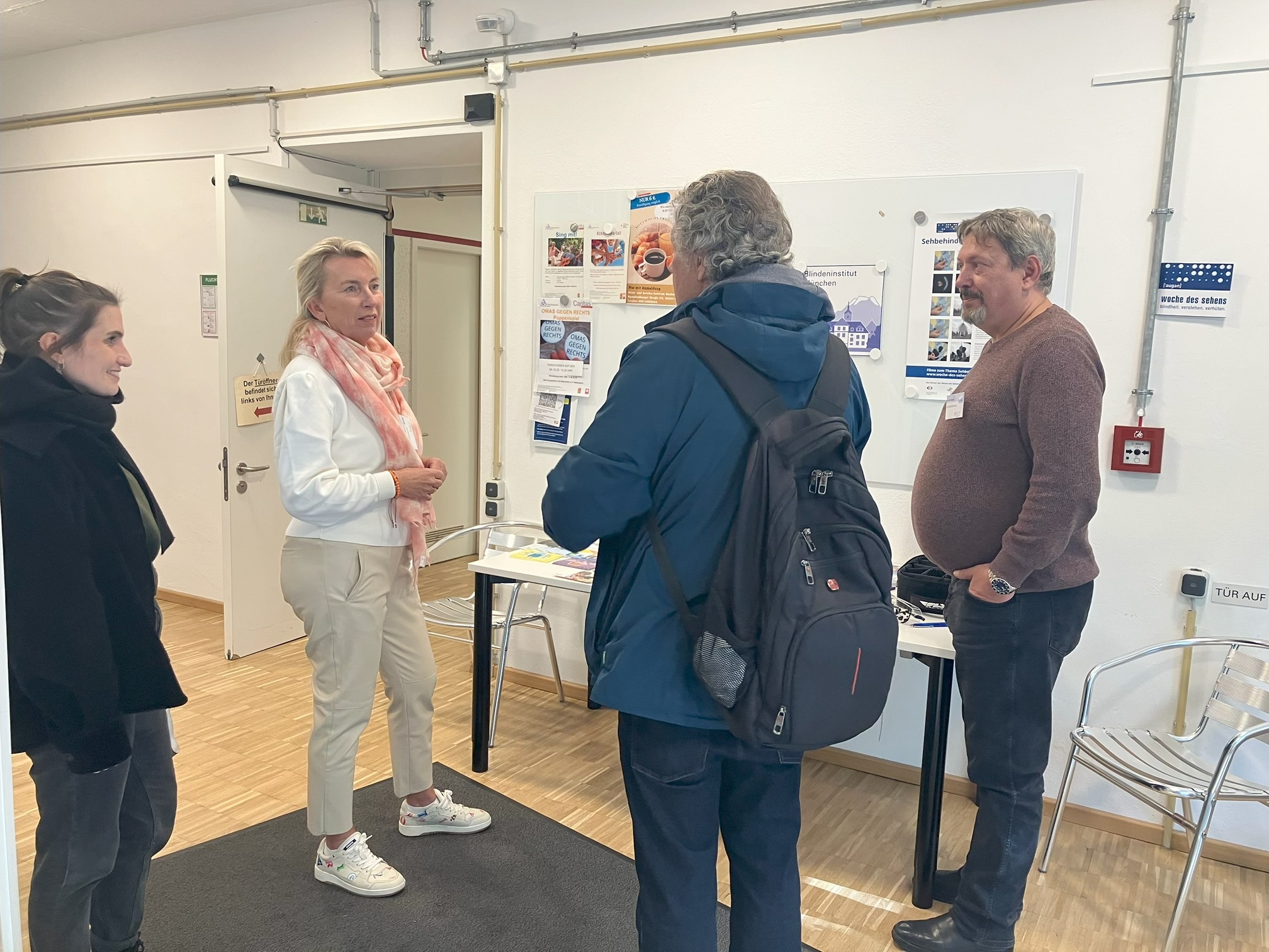Im Rahmen der „Woche des Sehens“ organisierte ein Team der Teilhabeberatung des Blindeninstituts München am 8. Oktober 2025 einen Info-Stand im Alten- und Servicezentrum (ASZ) Neuhausen. Zielgruppe waren interessierte und betroffene Senioren und Seniorinnen die Fragen zum Sehen im Alter und zu Augenerkrankungen hatten. Unser besonderes Augenmerk lag darauf, niedrigschwellige Kontakte für BesucherInnen anzubieten, um Fragen zu klären und sich über mögliche Hilfen zu informieren. Flyer und Broschüre waren zur Mitnahme ausgelegt und einige Hilfsmittel zur Erleichterung im Alltag ausgestellt.