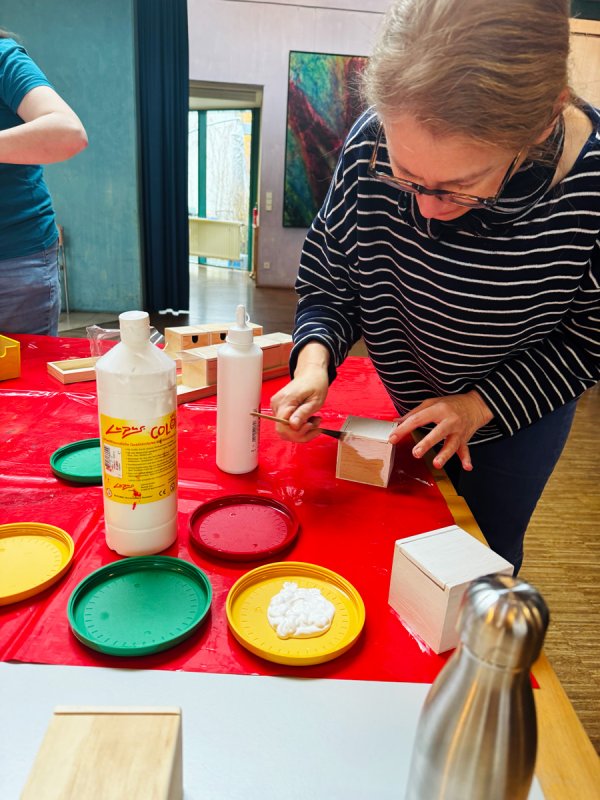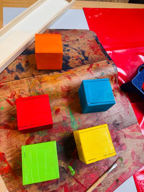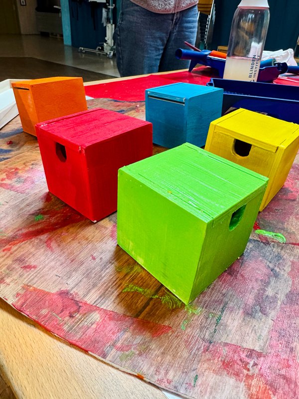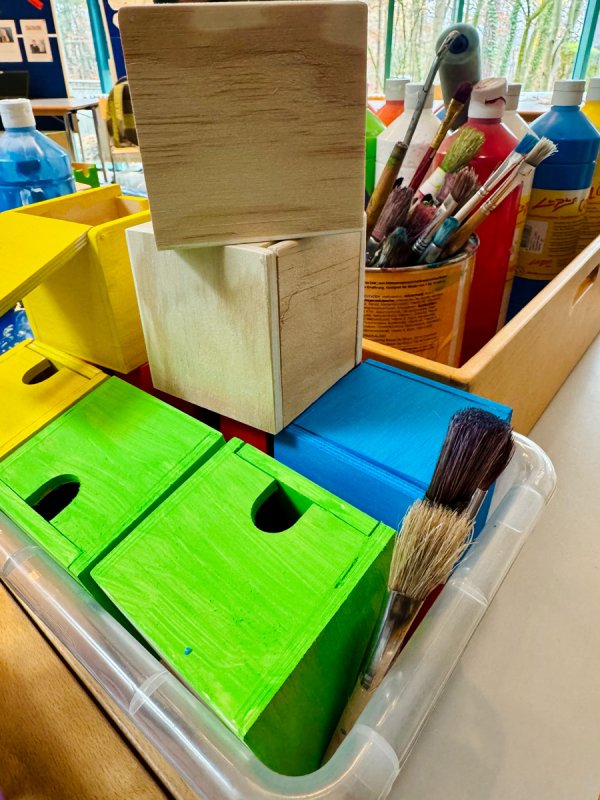 Mit viel Freude, Farbe und Liebe zum Detail wurden bunte Holzboxen bemalt. Hinter diesen kleinen Kunstwerken steckt jedoch ein großes, liebevoll durchdachtes Projekt für unsere Schülerinnen und Schüler – und natürlich auch für unsere SVE-Kinder.