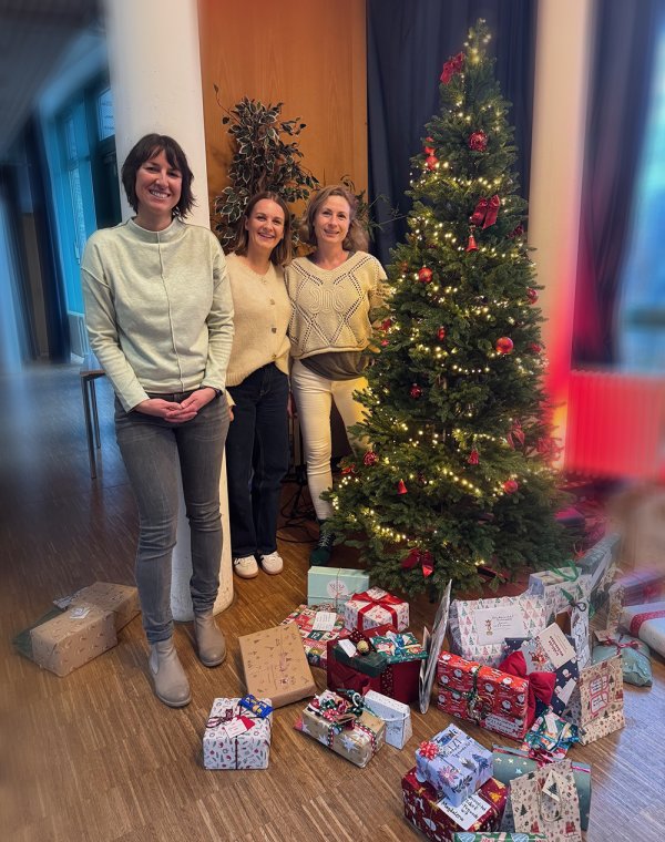 Gestern war es endlich soweit: Vor unserem festlich geschmückten Weihnachtsbaum in der Aula durften die Kinder – teils stellvertretend für ihre Gruppen – die bunten Geschenke entgegennehmen. Es war ein Augenblick voller Freude und Dankbarkeit.