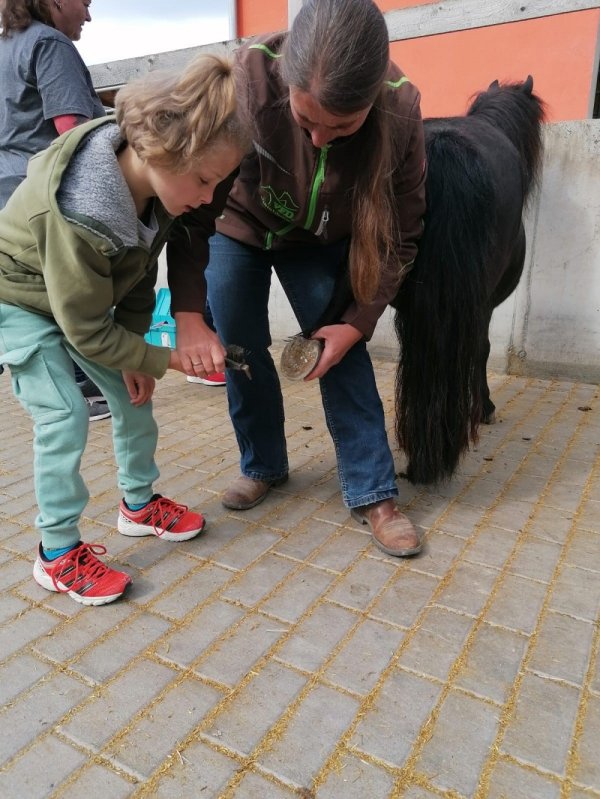 Ganz schön groß sind die Pferde Cinderella und Lexi, deshalb war vor dem Reiten erstmal ausgiebiges Beschnuppern angesagt. Dazu gehörten auch das Putzen, Striegeln und sogar das Auskratzen der Hufe.