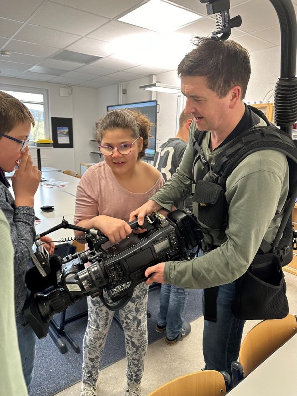 So begrüßte die Tagesschulklasse 2 das Team von Clip Film-und Fernsehproduktion aus Suhl, welches für verschiedene Sender und Formate produziert.
