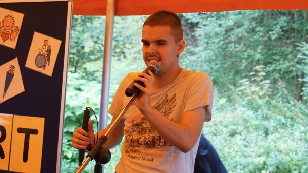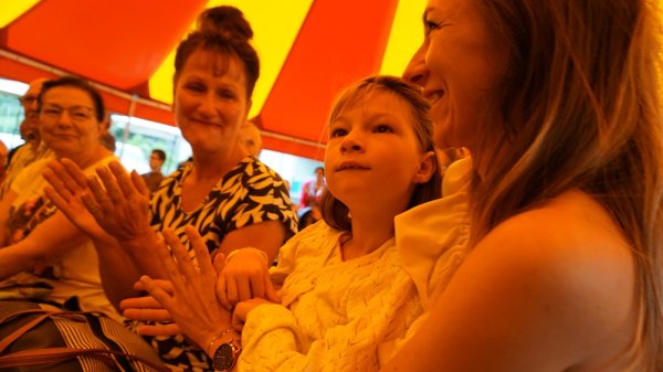 Auch Leni und Yannik, die schon Schulerfahrung haben, wurden herzlich aufgenommen. Yannik stand gleich mit seiner jetzigen Schulklasse auf der Bühne, sang und gebärdete als wäre er schon länger bei uns.