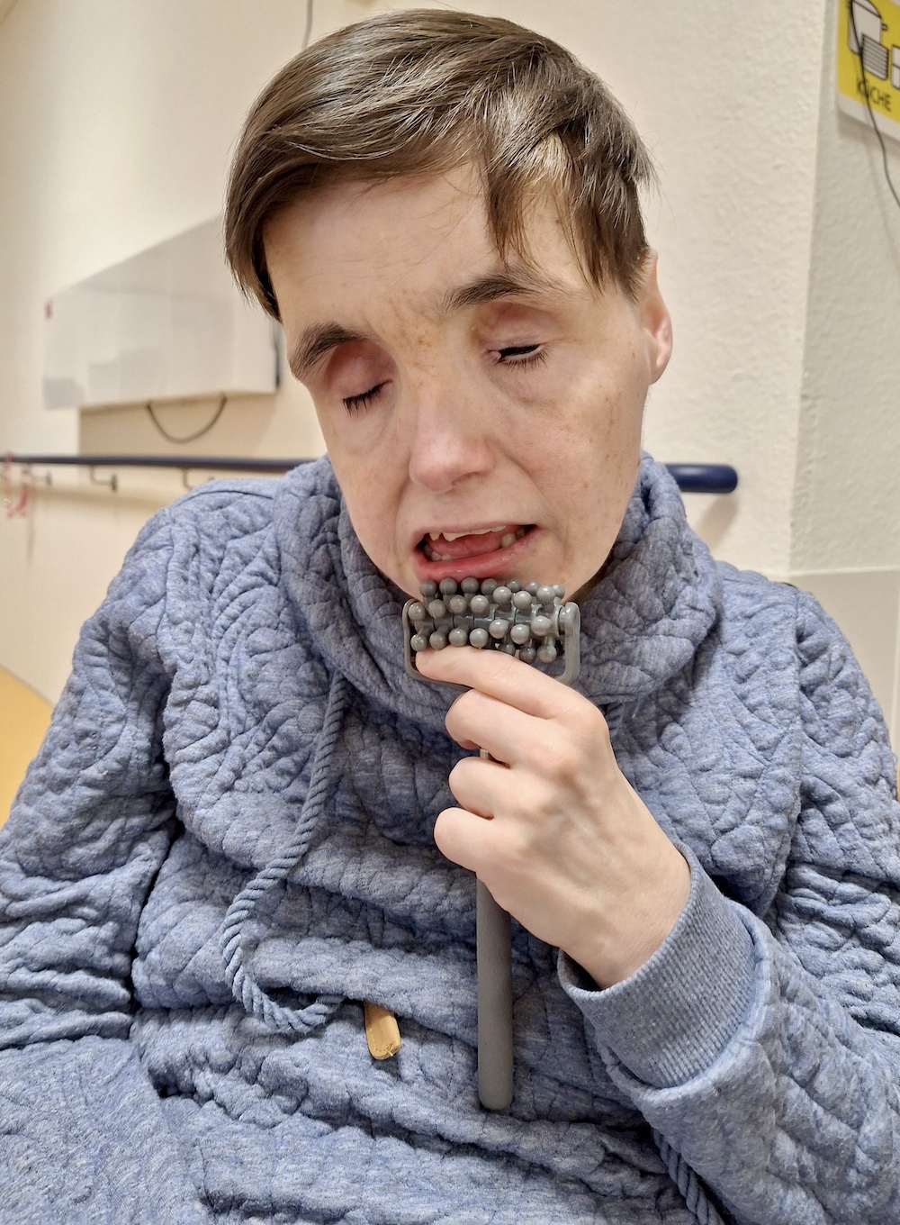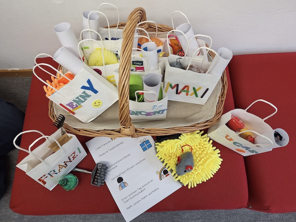 Im Blindeninstitut Thüringen lernen und leben Menschen, die eine Hörsehbehinderung haben oder taubblind sind. Menschen mit einer doppelten Sinnesbehinderung haben eine besondere Lebenssituation, die eine ebenso besondere Aufmerksamkeit braucht. Diese Aufmerksamkeit erfahren die Kinder, Jugendlichen und Erwachsenen täglich, aber anlässlich des Europäischen Tags der Taubblinden am 22. Oktober noch einmal mehr. Das Fachteam Kommunikation, das sind Kathia Schmitt, Steffi Kallenbach, Juliane Pallasch und Katrin von Vogt, hatte für alle zwölf kleinen und großen Menschen mit doppelter Sinnesbehinderung eine kleine Tüte vorbereitet. Darin schöne Dinge, die zum Sehen, Fühlen, Riechen, Tasten, Hören und Schmecken einladen.