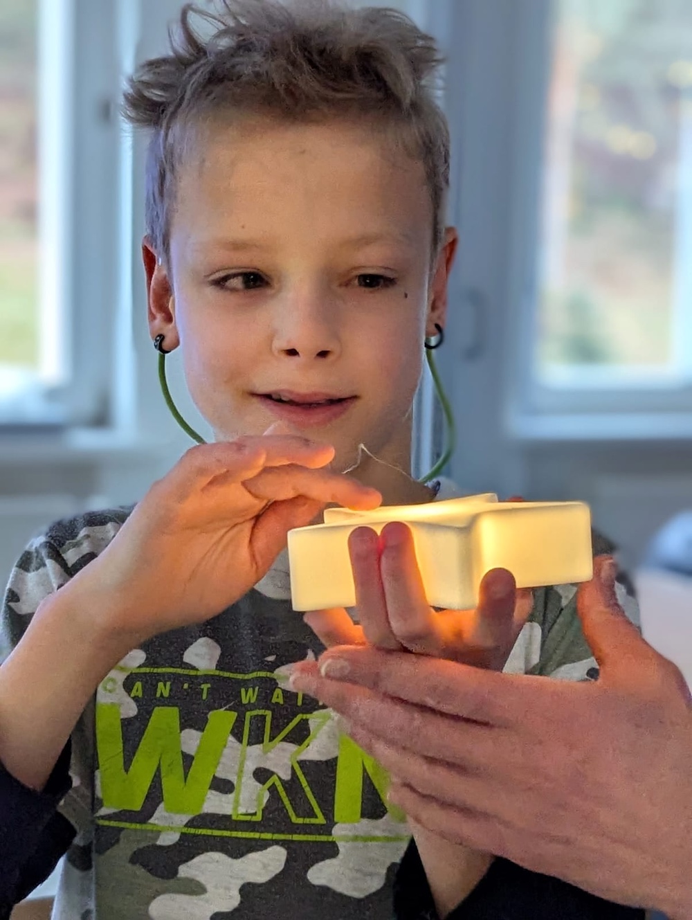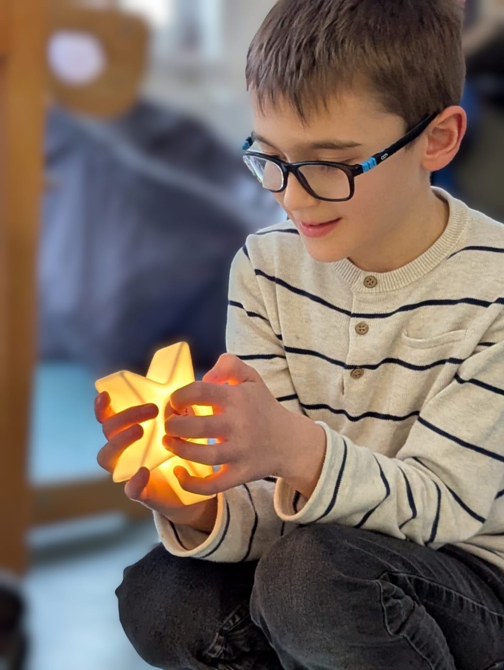Und weil Licht und leuchtende Dinge in unserem Blindeninstitut Thüringen wichtig sind, haben wir als Fachteam Sehen für jede Klasse und Gruppe ein Geschenk: einen leuchtenden Stern!