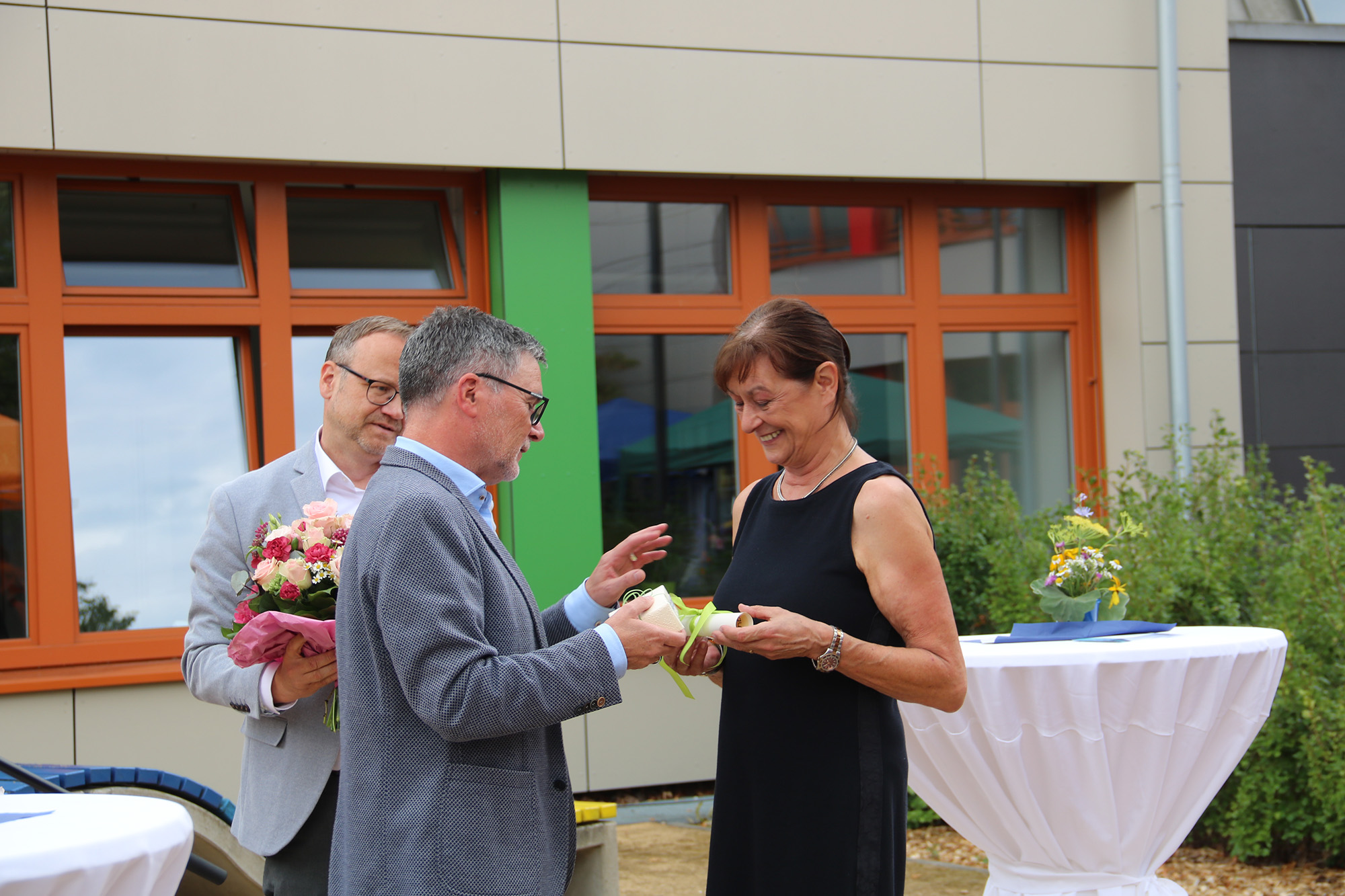 „Sie ist Pädagogin mit Kopf, Herz und Hand, die Kinder standen bei ihr immer an erster Stelle. Und sie brannte für das Thema Sehen und setzte in ihrer Arbeit viele Impulse für die Schulentwicklung und im Institut,“ betonte Institutsleiter Dr. Michael Weis in seiner Abschiedsrede. Stiftungsvorstand Johannes Spielmann erinnerte an zahlreiche herausfordernde Projekte, die Heike Sandrock als Schul- und stellvertretende Institutsleiterin bewältigt hat, wie die Generalsanierung der Graf-zu-Bentheim-Schule im laufenden Schulbetrieb. Oder ihr Engagement bei der Entwicklung eines Konzeptes für den Aufbau von IKIG - Klassen und Gruppen für Kinder mit herausforderndem Verhalten, das fachlich deutschlandweit seinesgleichen sucht. Er unterstrich, dass hinter der gemeinsamen, manchmal mühsamen Entwicklungsarbeit ein starkes Eintreten und Kämpfen für Menschen mit Blindheit und Sehbehinderung steht, das Heike Sandrock ausmacht. Der Weg hätte für sie viel Aufmerksamkeit, Nerven und Kraft gekostet, aber sie könne jetzt mit Überzeugung sagen: Der Weg hat sich mehr als gelohnt. Er dankte der scheidenden Rektorin für ihr „Kollegin sein auf Augenhöhe“ und wünschte ihr alles Gute für den neuen Lebensabschnitt.