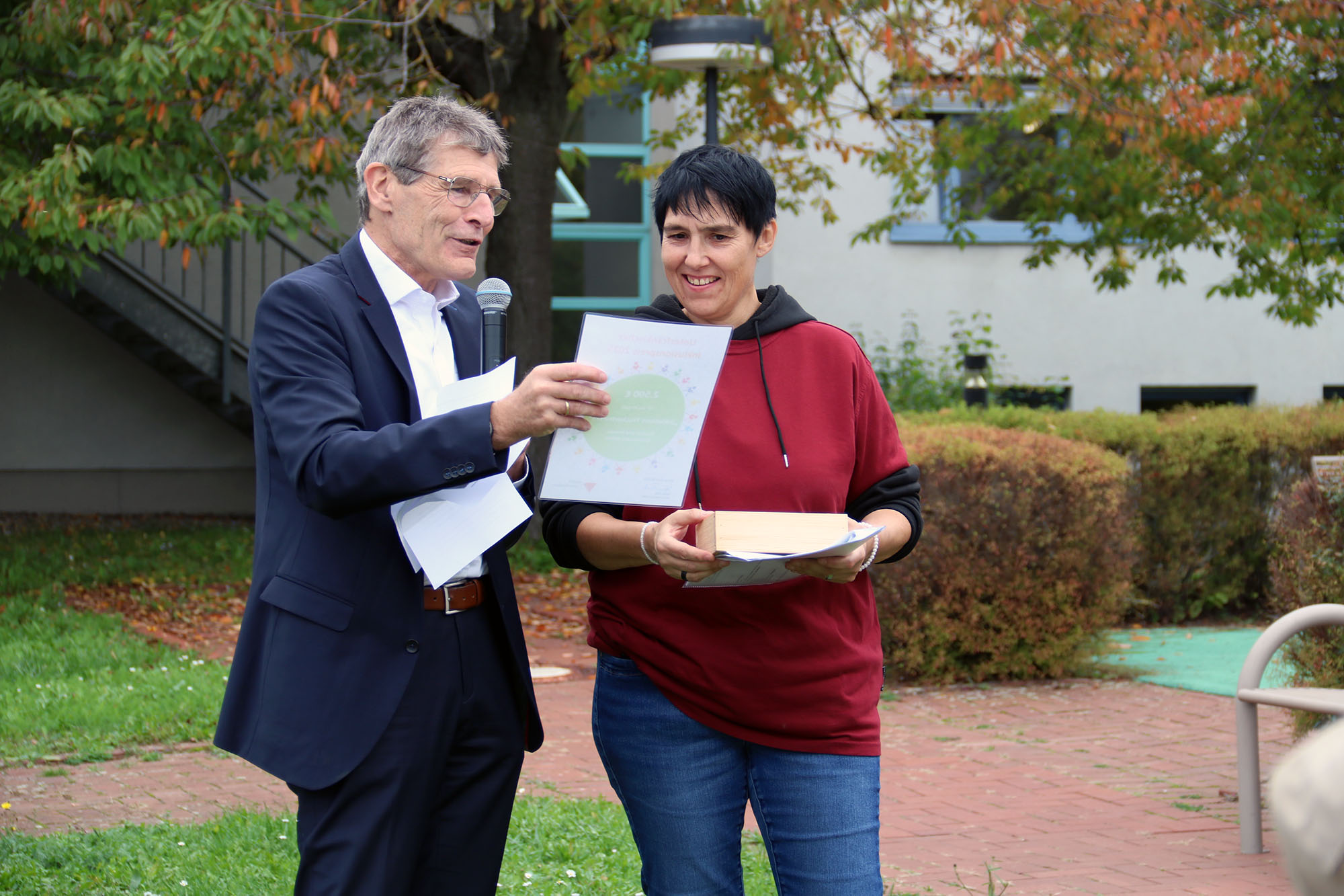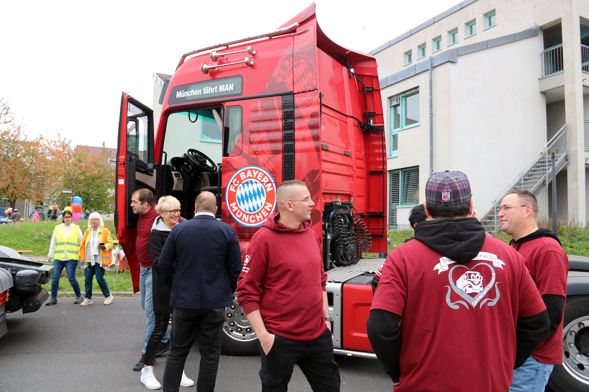 Das sechste Truckerfest im Blindeninstitut Würzburg hatte es in sich: So viele Besucher und so viel Neues gab es noch nie. Über 140 Besucher*innen kamen am zweiten Oktoberwochenende auf das Gelände in der Ohmstraße, um mitzufiebern, mitzufahren und mitzufeiern. Unter den Gästen war auch Bezirkstagsvizepräsident Thomas Schiebel, der Initiatorin Marion Gock für ihr außergewöhnliches Engagement den Unterfränkischen Inklusionspreis in der Kategorie „Sport und Freizeit“ überreichte.