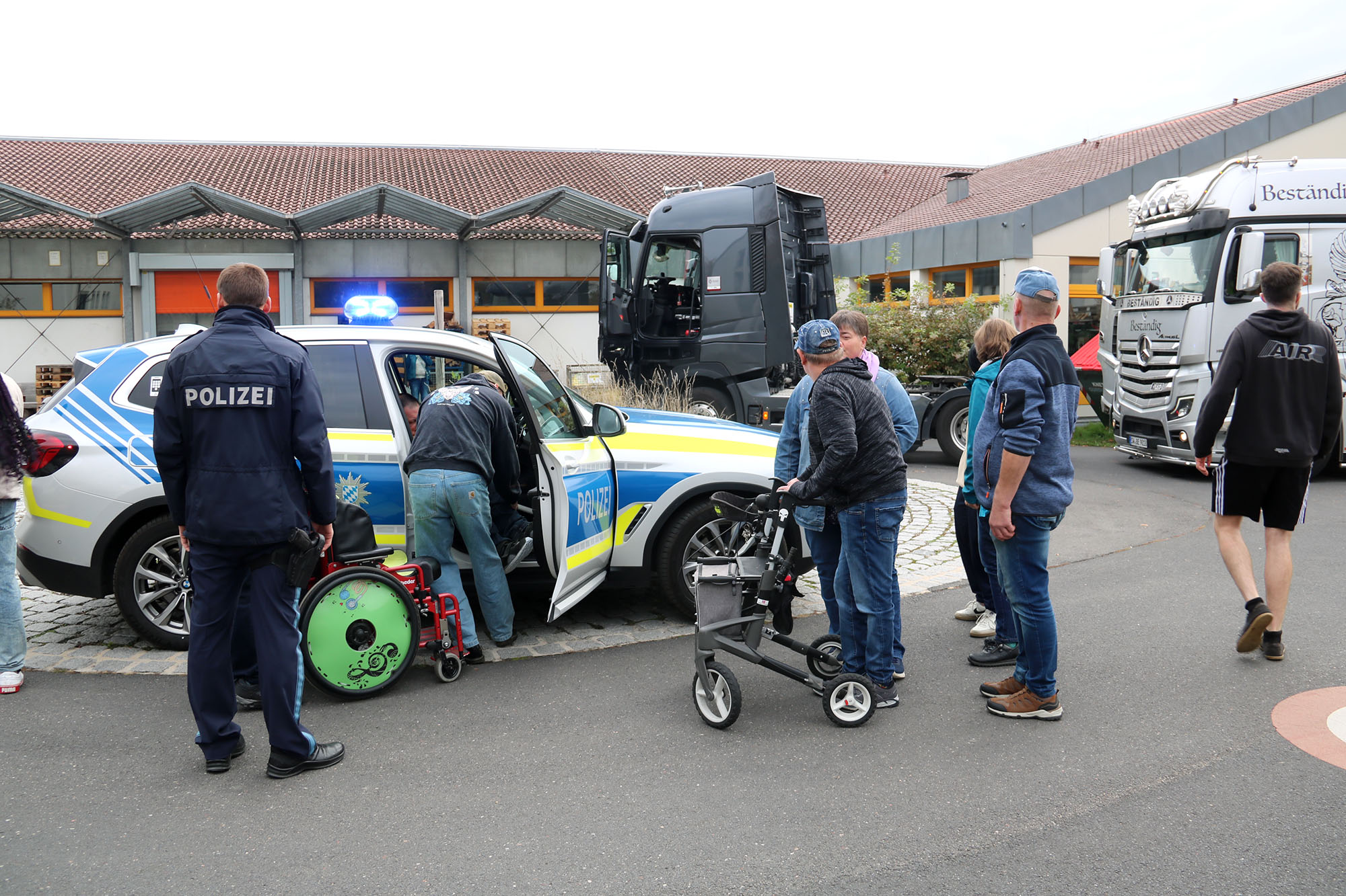 Seit 2018 organisiert Marion Gock das inklusive Event – unterbrochen nur durch zwei Corona-Jahre. Ihr Ziel: blinden, seh- oder mehrfachbeeinträchtigten Kindern, Jugendlichen und Erwachsenen einen unvergesslichen Tag schenken. Und das ist auch in diesem Jahr mehr als gelungen: Über 60 Mitfahrerinnen und Mitfahrer hatten sich angemeldet, um in einem PS-starken LKW eine große Runde auf der Bundesstraße zu drehen oder mit der Polizei und Blaulicht über das Institutsgelände in der Ohmstraße zu fahren. Möglich gemacht haben die inklusive Fahrtaktion die Speditionen Beständig, Michel und der FC-Bayern-Truck der Firma Gress sowie die Verkehrspolizeidirektion Biebelried mit drei Kollegen, die ein spezielles Einsatzfahrzeug mitgebracht hatten. Beim Arbeiter-Samariter-Bund war ein Drohnenfahrzeug zur Personensuche zu bestaunen und es gab eine extra im 3D-Drucker gefertigte Drohne, die von den blinden Gästen abgetastet werden konnte.
