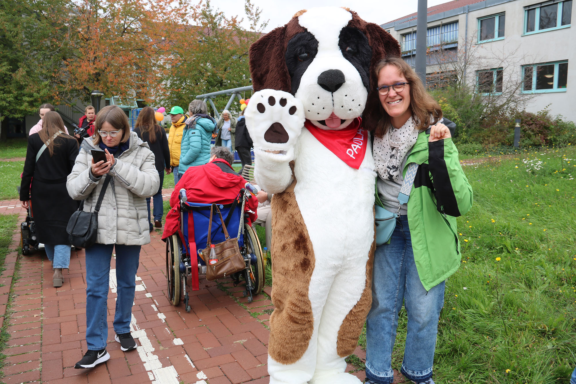Besonderes Highlight war der erste Auftritt des neuen Inklusionsmaskottchens Paula von den „Trucker and Friends – gemeinsam anders“. Es wurde bestaunt, in den Arm genommen und jeder wollte ein Foto mit dem über zwei Meter großen Stoff-Bernhardiner.