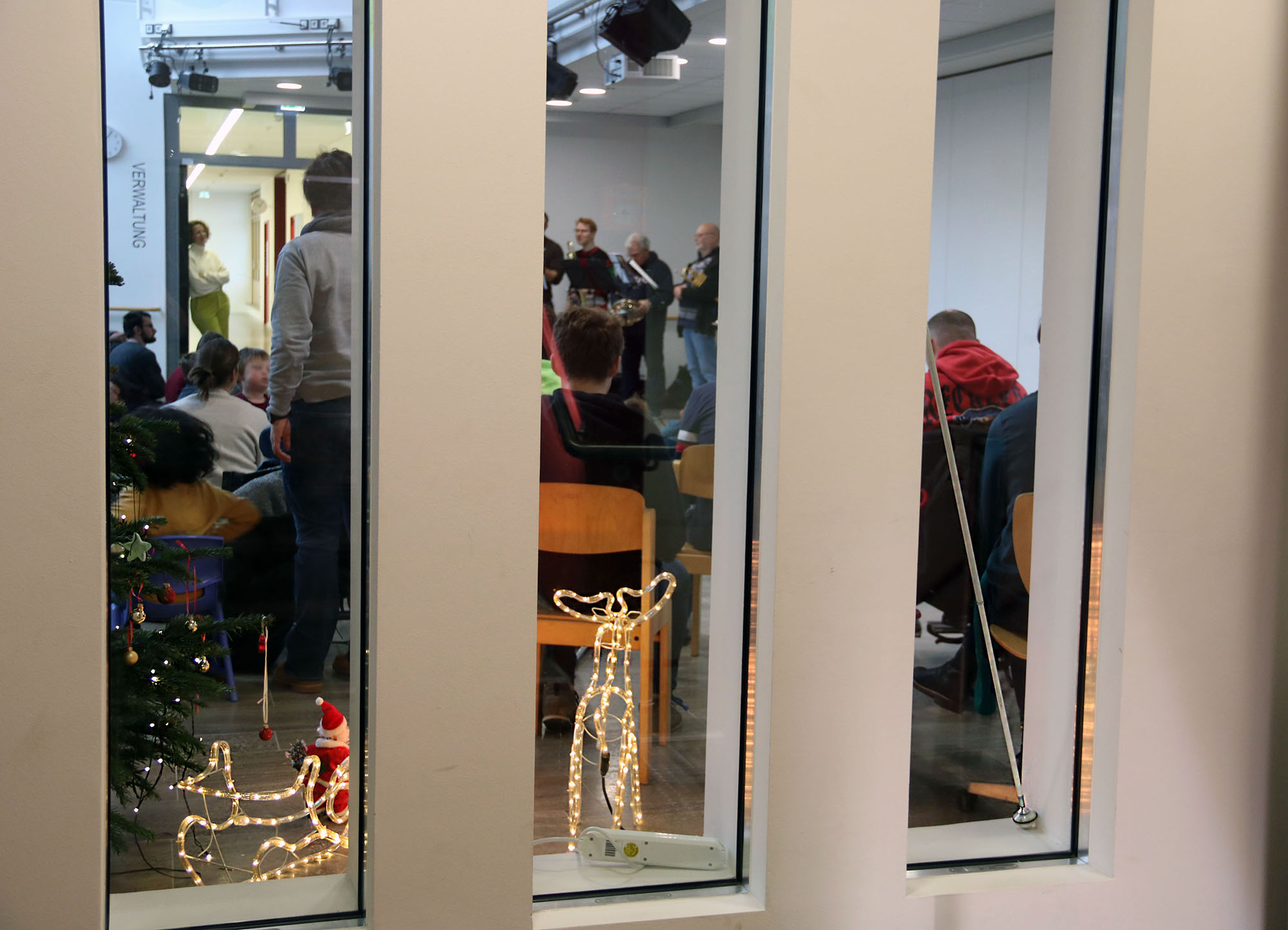 Was in der Corona-Zeit mit Freiluftkonzerten begann, hat sich zu einer schönen Tradition entwickelt. Schon seit vier Jahren kommen die Blechbläser des Philharmonischen Orchesters des Mainfrankentheaters in der Adventszeit zu Liveauftritten in das Blindeninstitut und werden von den Menschen mit Blindheit oder Sehbeeinträchtigung und weiteren komplexen Behinderungen schon freudig erwartet.